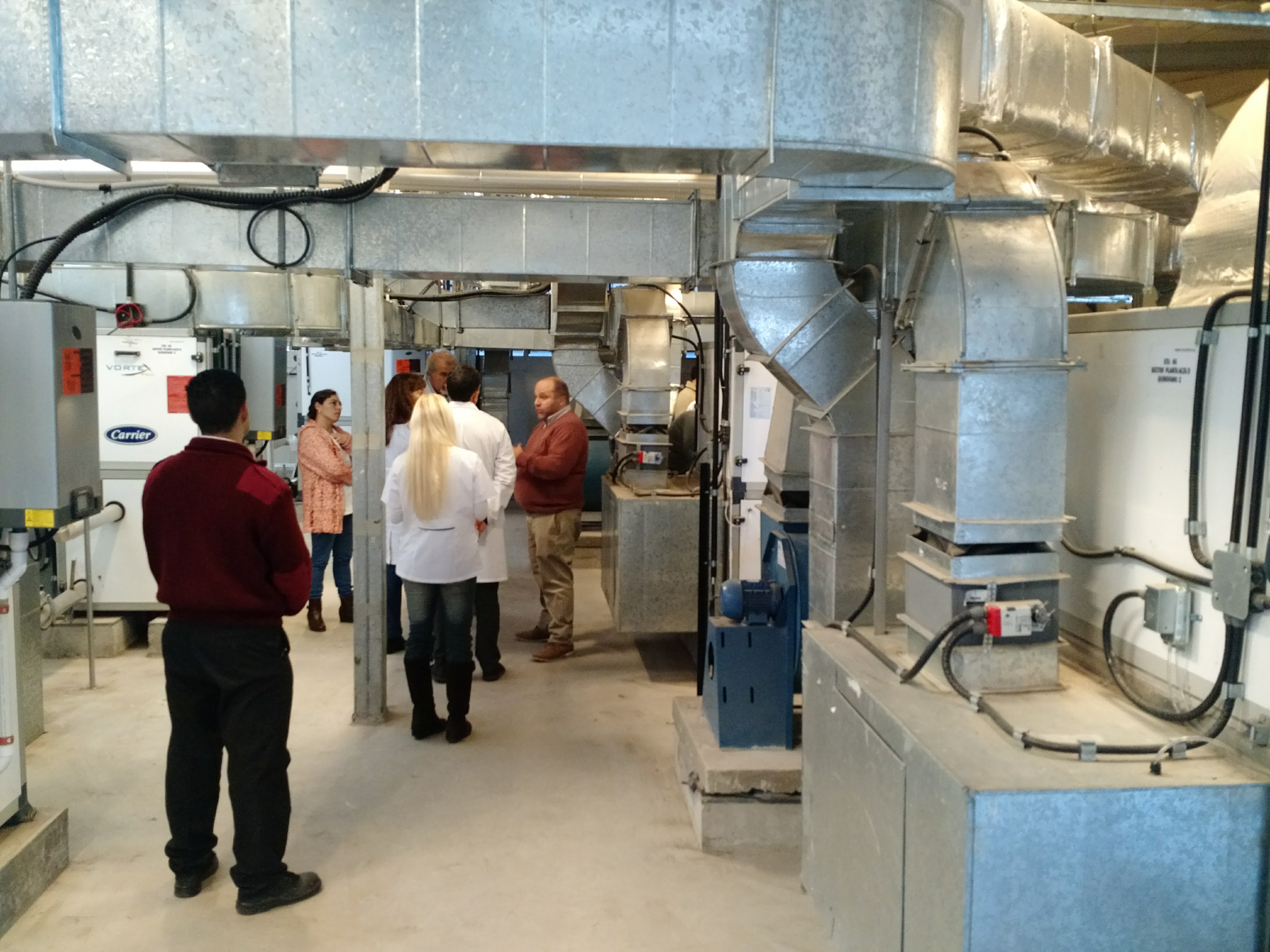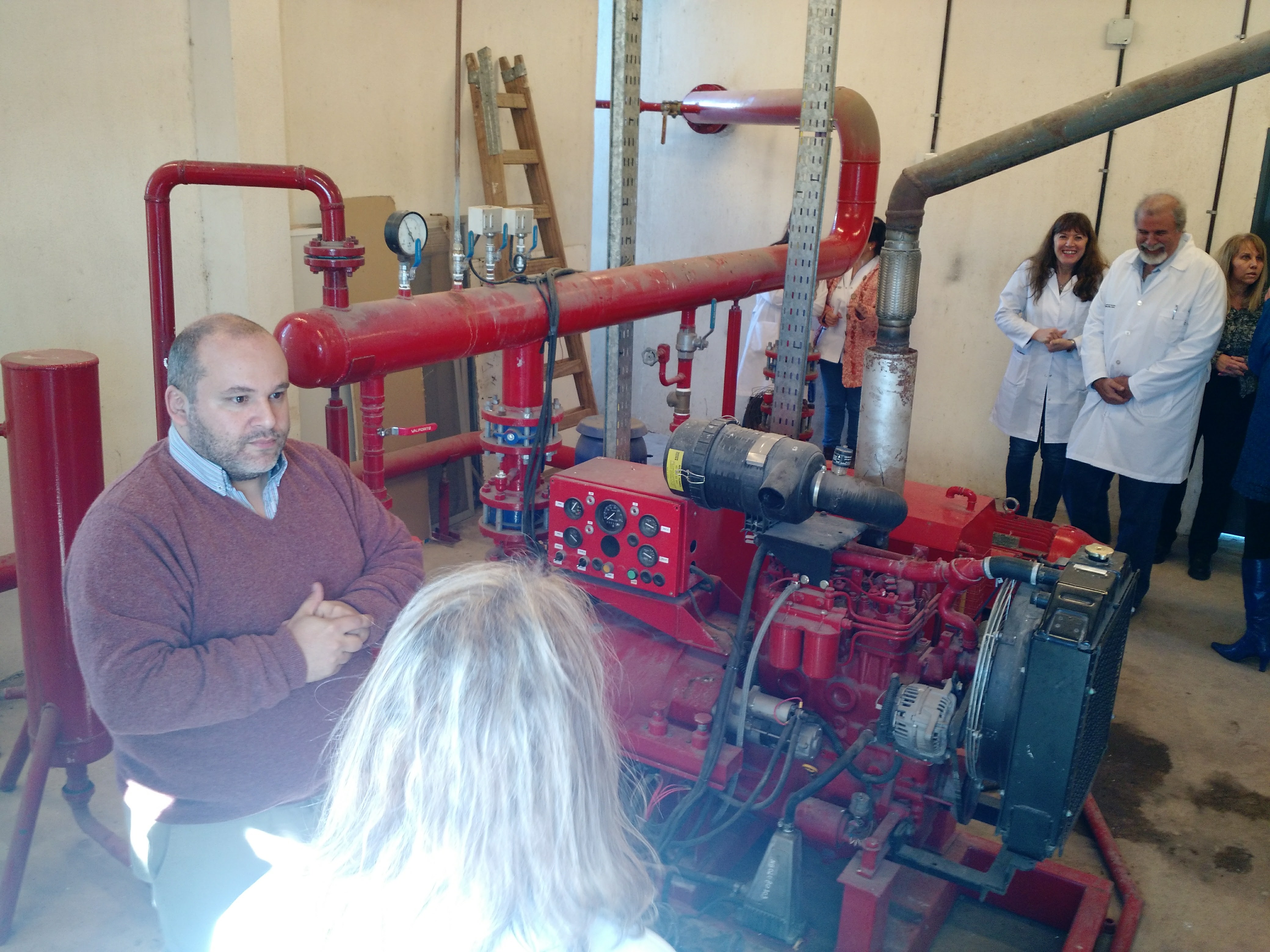 El recorrido incluyó las centrales de monitoreo y de incendio; comando operativo de control de iluminación, refrigeración, calefacción y ventilación (BMS); sala de racks (internet y telefonía) y matriz (generadores eléctricos, banco de baterías, gases y comando automático de interruptores, TGBT); sala de bombas contra incendio y de máquinas (calderas y sistemas inteligentes de calefacción y refrigeración)