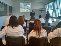 En la charla realizada en el aula de Capacitación y Docencia del HCAS, Facín detalló los objetivos y responsabilidades a cargo de la dirección a su cargo que comprende las áreas de Ingeniería Clínica, Arquitectura y Tecnología Informática.