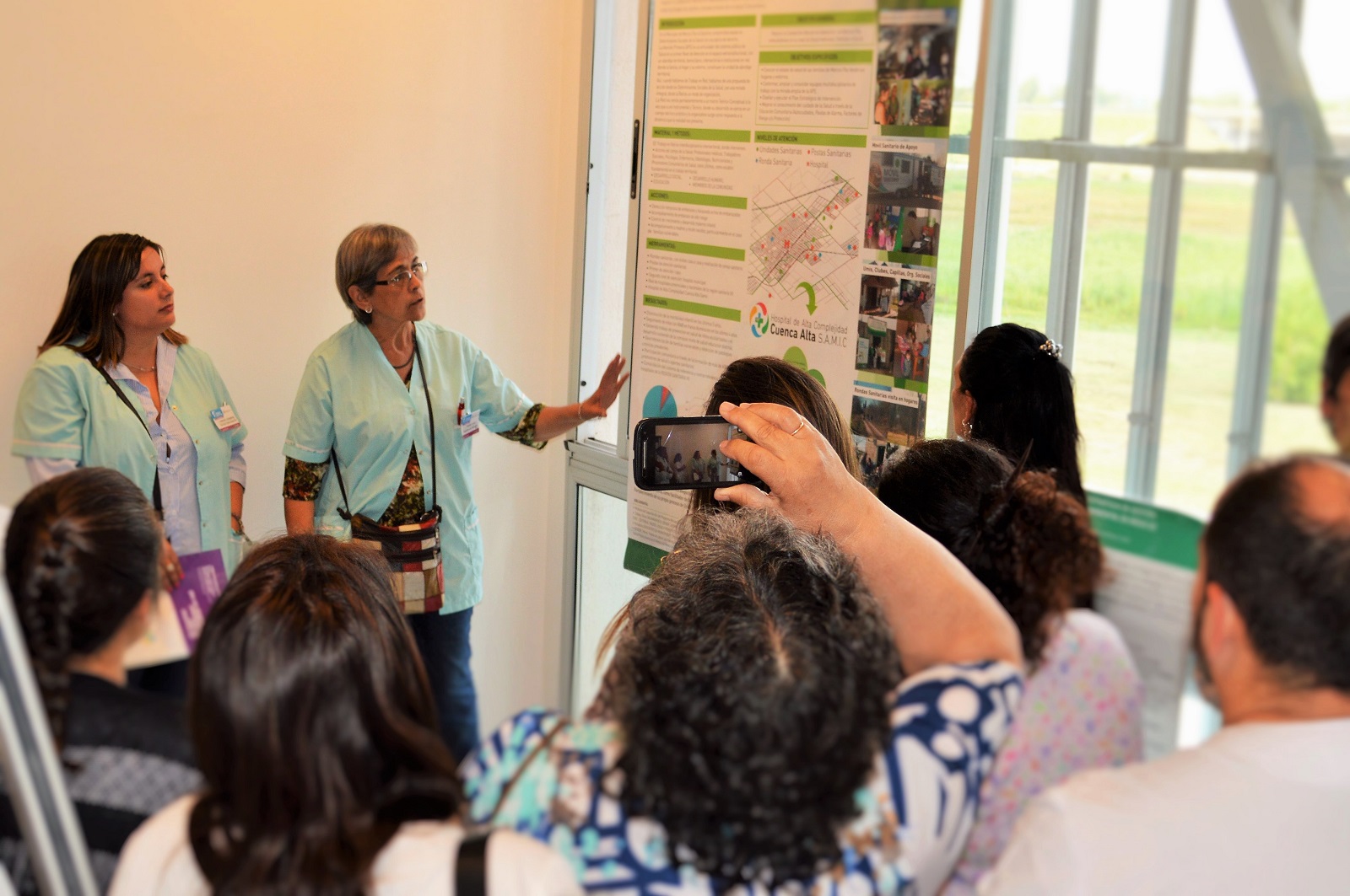 Francisco Moioni, profesional responsable del servicio de Farmacia del HCAS, junto a la mezosoprano Dolores de Urquiza, le dieron un marco artístico a la Jornada que continuó con la presentación de 29 posters a cargo de sus autores, donde se compartieron experiencias de los diferentes servicios del hospital, de los municipios de la cuenca y de la acción de ACUMAR (Autoridad de Cuenca Matanza Riachuelo) en relación al impacto del ambiente en la salud de la población.